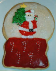 HoHo snowglobes are sugar cookies decorated to look like Santa in a snowstorm!